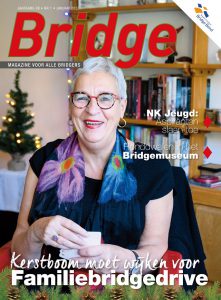 De beste parenspeler aller tijden is in 1985 vermoord en tot ieders verbazing werd de moord na 34 jaar alsnog opgelost. Het was een heel bijzonder Bridgecongres dit jaar met een historische wisseling van de wacht. Meike van der Valk (41) ging bridge leren door haar dochter Marieke (14). In een kleine, maar knusse seniorenwoning in Wormerveer vond de 107e (!) ‘Van der Laan-drive’ plaats. De fantasierijke wereld van bridge vind je in het Bridgemuseum in Leerdam. Kom op zondag 26 januari naar Utrecht voor de slotdag van de Meesterklasse Viertallencompetitie en huldiging van de (inter) nationale kampioenen van 2019. Uiteraard vind je in Bridge ook een verslag van de NK’s Senioren Viertallen en NK Jeugd Viertallen.
