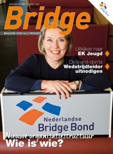 Benieuwd hoe de MijnNBB-omgeving werkt? Nancy en Hans kijken uit naar het EK Jeugd in Nederland. Een kijkje in de organisatiestructuur van de BridgeBond. In de nieuwe rubriek ‘Wie is wie’ trapt Geon Steenbakkers af. Uit de oude doos: het schandaal rondom Anton Rijke. Het ‘paar van de maand’ Anneke en Franklin: echtpaar maar zeker geen vechtpaar. Dat en nog veel meer in Bridge van deze maand.