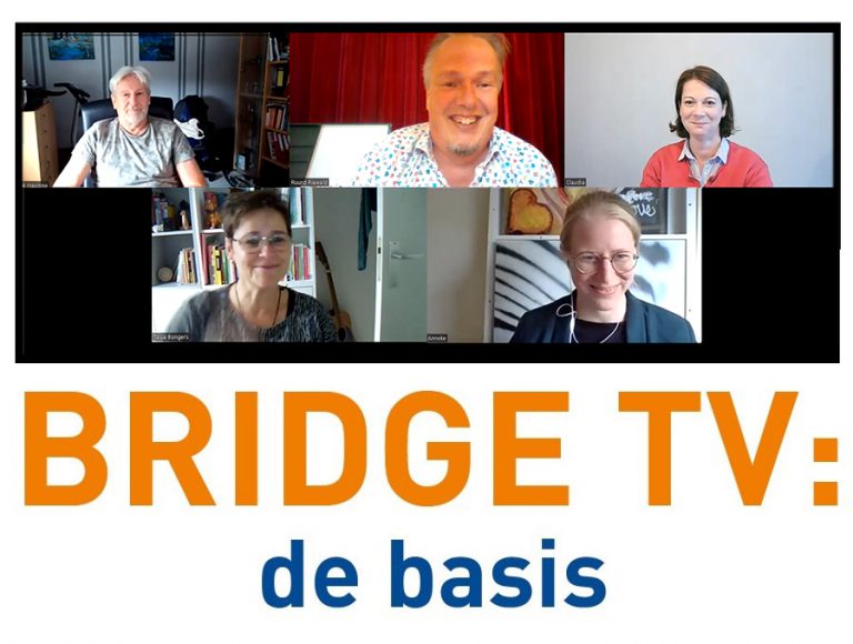 BridgeTV: de basis: gezellig en leerzaam voor de beginnende bridger of basisspeler. Wil je jouw basis verstevigen, iets nieuws opsteken of je kennis opfrissen? Doe online mee met het panel, dat kan gewoon thuis via de chat. Ook kijken bridgers samen met partner, clubleden en bridgevrienden.