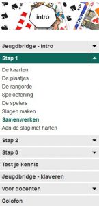 ‘Jeugdbridge Intro’, ‘Jeugdbridge Klaveren’ , ‘Jeugdbridge Ruiten’ en ‘Jeugdbridge Harten’zijn inmiddels voltooid: