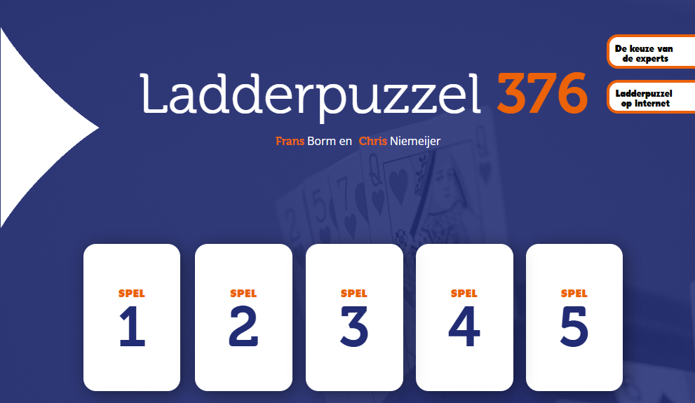 In de e-zine van BridgeNL worden de oplossingen van experts en andere inzenders vergeleken in een panel en besproken door Chris Niemeijer en Frans Borm. Behalve dat de ladderopgaven gewoon leuk zijn om te doen kun je er dus wat van leren en zelfs winnen.