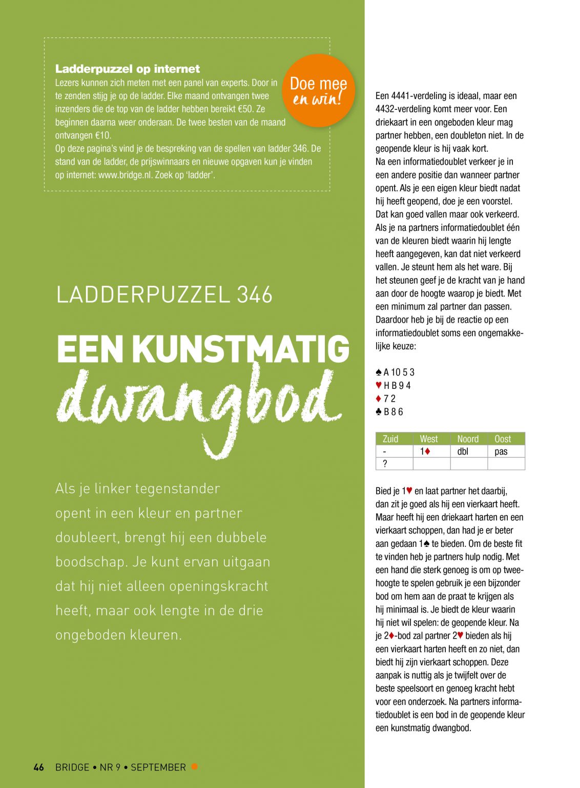 Bespreking van puzzel 346, als gepubliceerd in Bridge van september 2020.