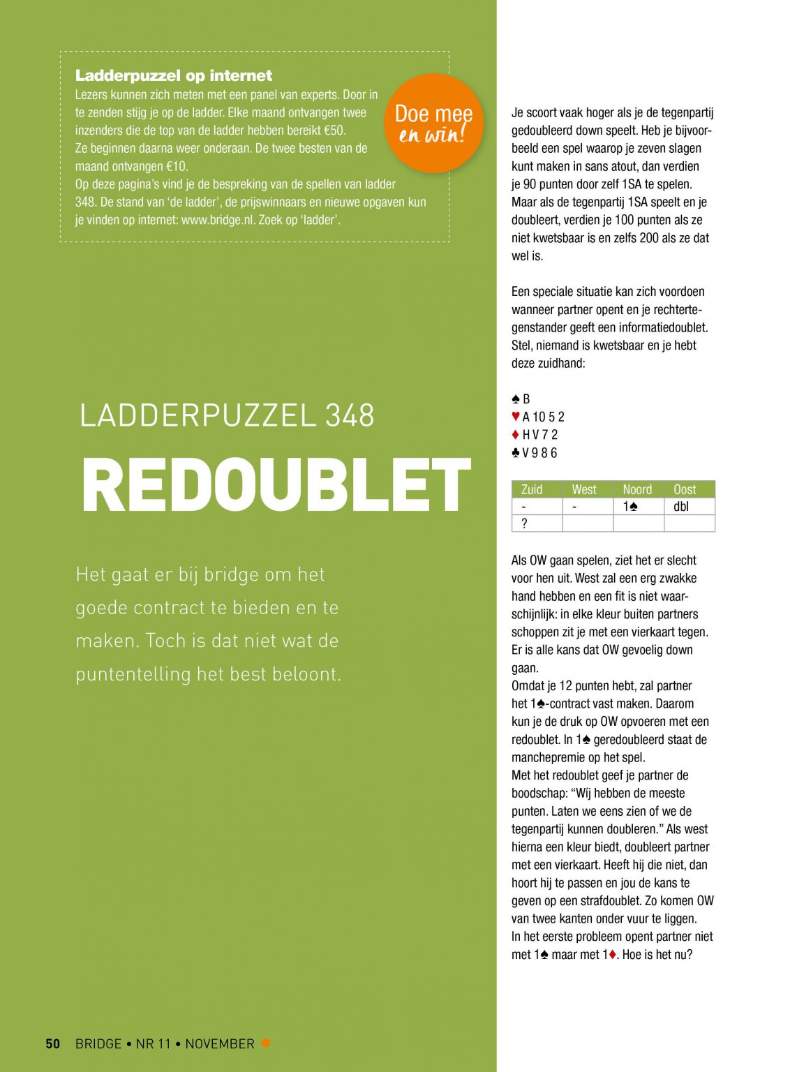 Elke maand publiceren we op onze website de nieuwste ladderpuzzel, bij het verschijnen van het blad Bridge. Doe ook mee!