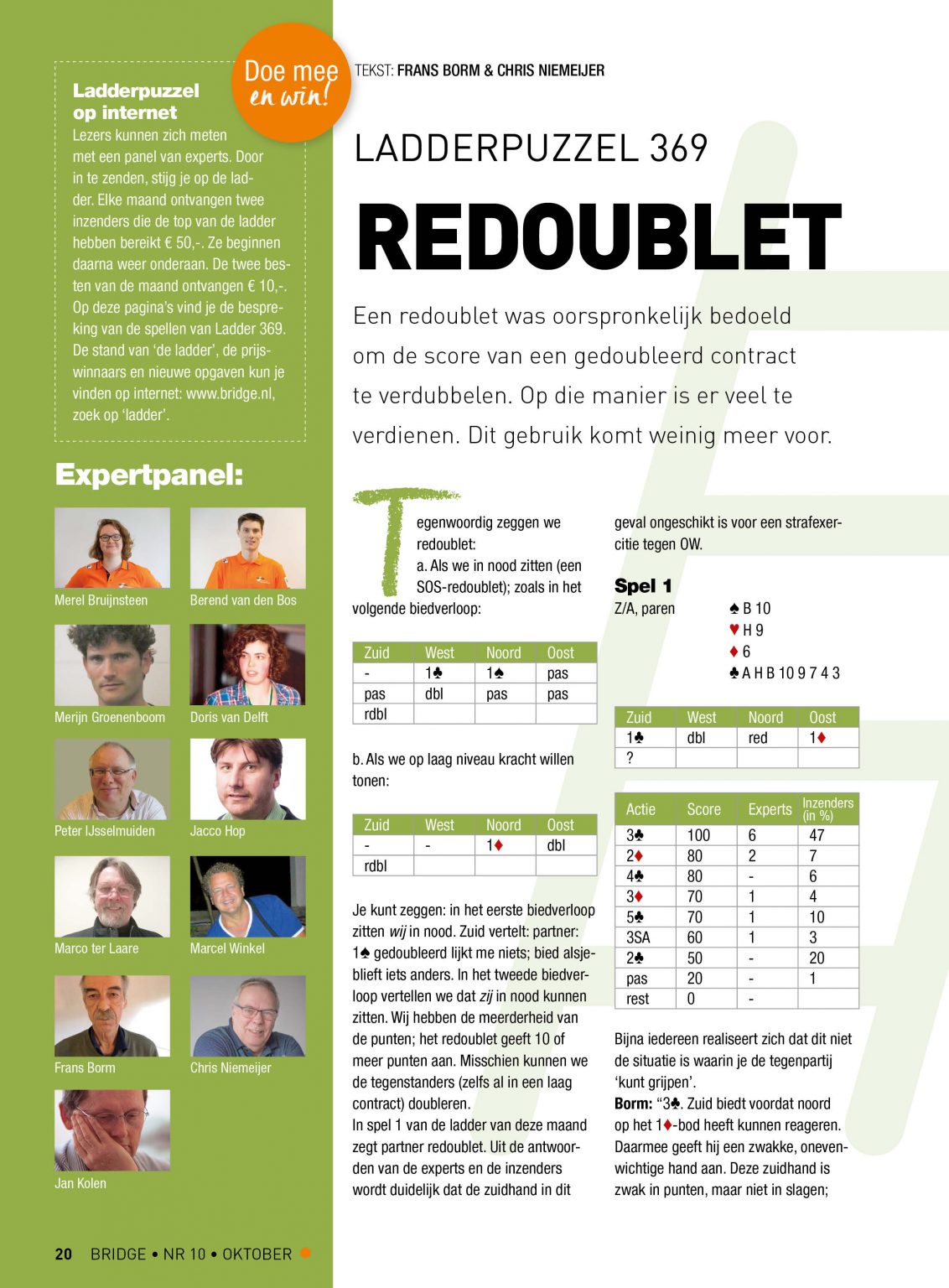 In het blad Bridge en op de website worden de oplossingen van experts en andere inzenders vergeleken in een panel en besproken door Chris Niemeijer en Frans Borm. Behalve dat de ladderopgaven gewoon leuk zijn om te doen kun je er dus wat van leren en zelfs winnen.