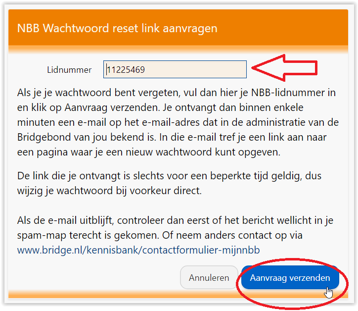Vul hier je lidnummer in en klik op ‘Aanvraag verzenden’.
