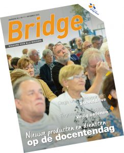 district of in het bondsbestuur – kan vervullen? Wees dan niet te bescheiden en meld je vooral! Nieuwe producten en diensten om bridgen te leren stonden centraal op de docentendag. Ook ging Bridge een dagje uit naar de Scheveningse Stranddrive en interviewde Marlou Duijvestijn over de beginners- en cursistenclub van StepBridge. In de Wie is wie maak je kennis met onze collega Halil Yüksel. Deze artikelen en nog veel meer in Bridge van deze maand.