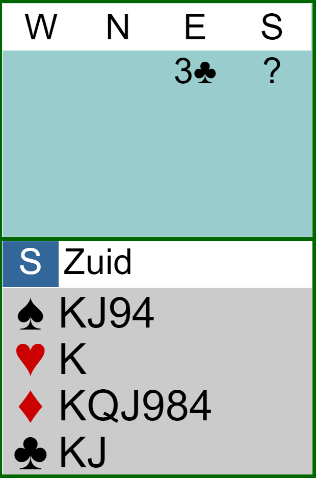 De tegenpartij opent 3 klaveren. Wat is nu je bod?