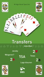 De prijs die je kunt winnen is ‘Transfers’ van Anton Maas, een echte Bridge Bond Special. In deze special worden de transfers na een opening van 1 sans atout behandeld. Zowel naar de hoge als naar de lage kleuren, sterke en met zwakke handen.