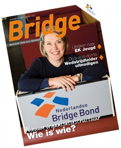 Benieuwd hoe de MijnNBB-omgeving werkt? Nancy en Hans kijken uit naar het EK Jeugd in Nederland. Een kijkje in de organisatiestructuur van de BridgeBond. In de nieuwe rubriek ‘Wie is wie’ trapt Geon Steenbakkers af. Uit de oude doos: het schandaal rondom Anton Rijke. Het ‘paar van de maand’ Anneke en Franklin: echtpaar maar zeker geen vechtpaar. Dat en nog veel meer in Bridge van deze maand.
