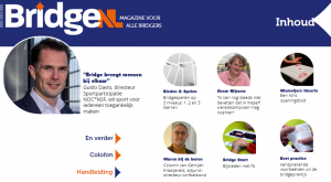 BridgeNL verschijnt 5 keer per jaar als e-zine (digitaal magazine) en 6 keer per jaar als magazine in de bus.  Via de link kom je direct bij het e-zine BridgeNL.