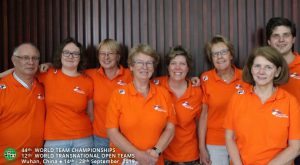 Peter IJsselmuiden (links) en Anneke Simons (derde van rechts) met TeamNL Bridge Vrouwen bij het WK in China