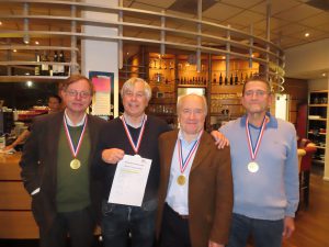 De kampioenen van het seniorenviertallen 2018: vlnr Toine van Hoof, Louk Herber, Lodewijk Tielens, Rob Groenenboom (Jan Meijer ontbreekt op de foto)