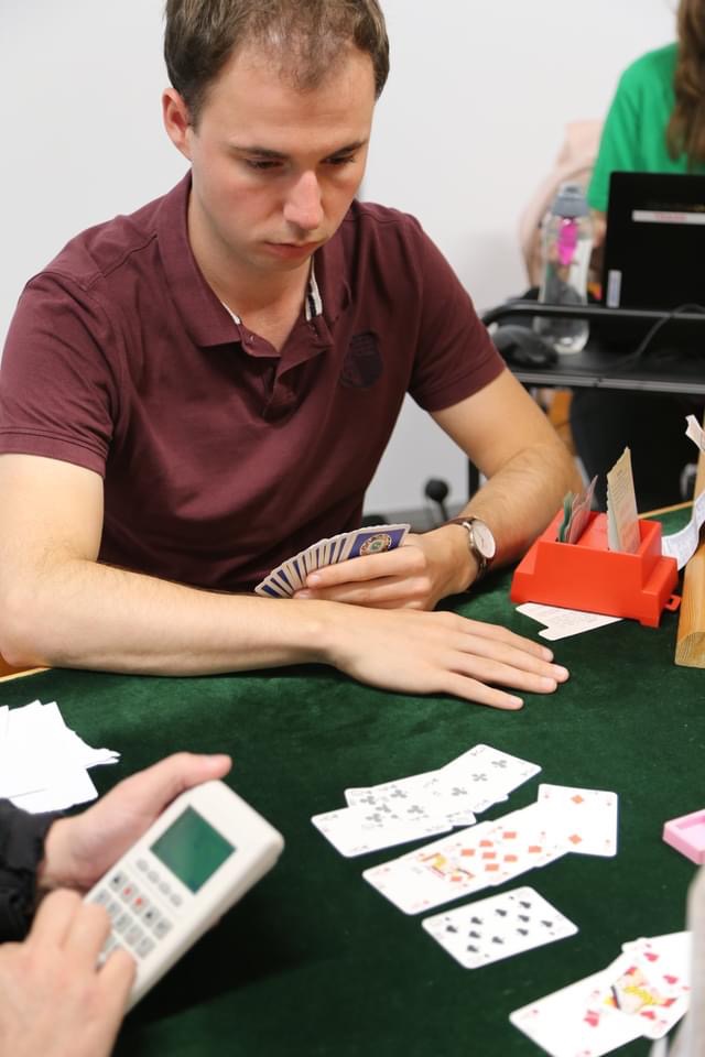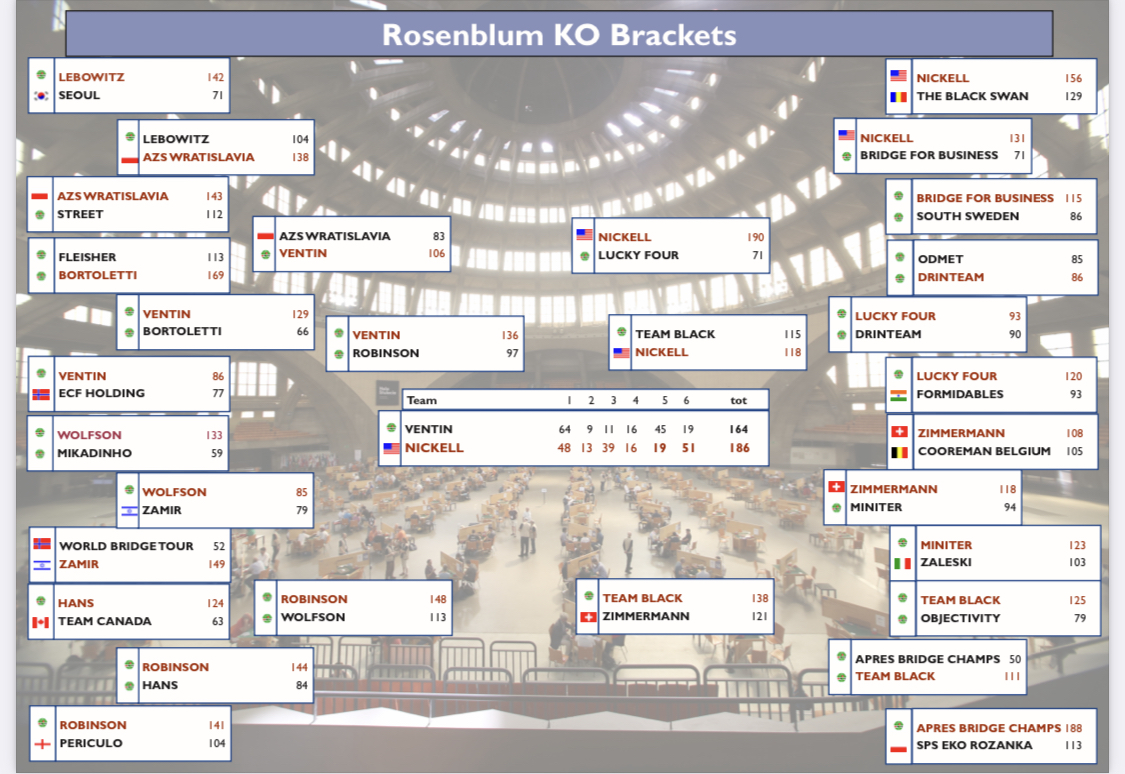 Kun je in komend magazine Bridge lezen dat Guy Mendes de Leon aan de weg timmert, vandaag speelt hij de halve finale tijdens de World Series in Wroclaw, Polen. Dat is Zwitserland, de heersende wereldkampioen voor landenteams, niet gelukt, die werd gisteren uitgeschakeld in de strijd om de Rosenblum. De halve finale van het WK voor open viertallen is te volgen via BBO. Volg onze ambassadeur van Be PROUD en zijn partner Thibo Sprinkhuizen in team Ventin, succes!