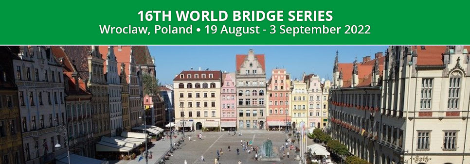Van 19 augustus tot en met 3 september wordt het 16e WK Bridge gespeeld in Wroclaw, Polen. Dit kampioenschap heet officieel de World Bridge Series.