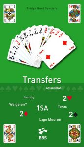 De prijs die Ria heeft gewonnen is ‘Transfers’ van Anton Maas, een echte Bridge Bond Special. In deze special worden de transfers na een opening van 1 sans atout behandeld. Zowel naar de hoge als naar de lage kleuren, sterke en met zwakke handen.