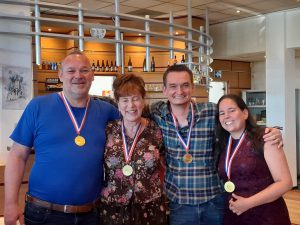 De Nederlands Kampioenen Gemengde viertallen: Krak met vlnr Mark Thiele – Renée Verdegaal, Chris & Jamilla Westerbeek