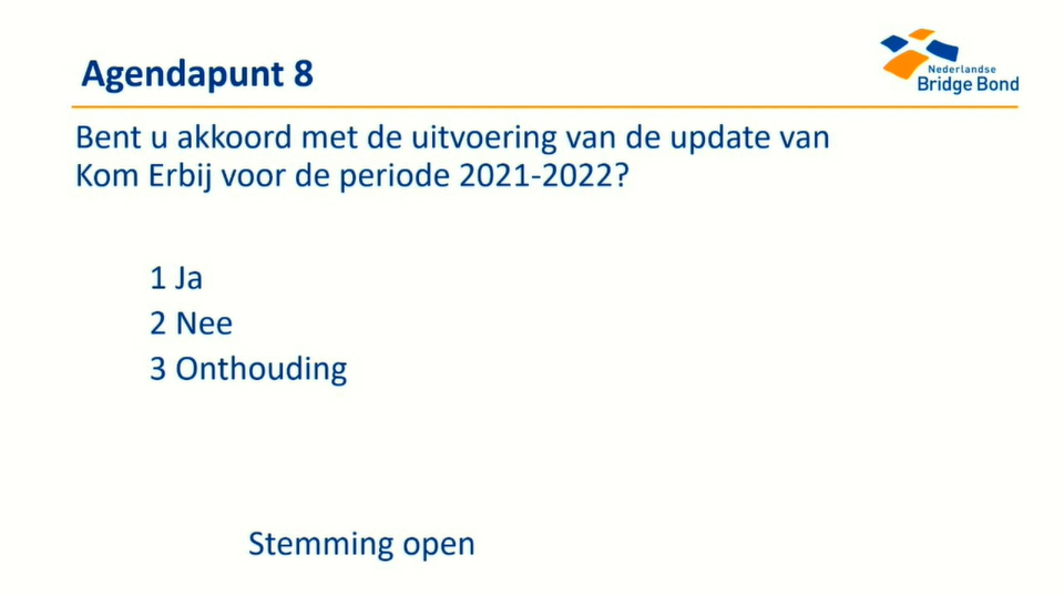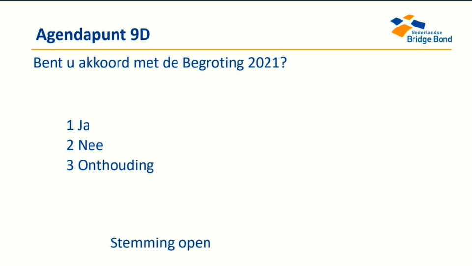 Op 7 november is de jaarlijkse algemene ledenvergadering van de BridgeBond gehouden. In 90 jaren was het toch een primeur deze helemaal online te organiseren.