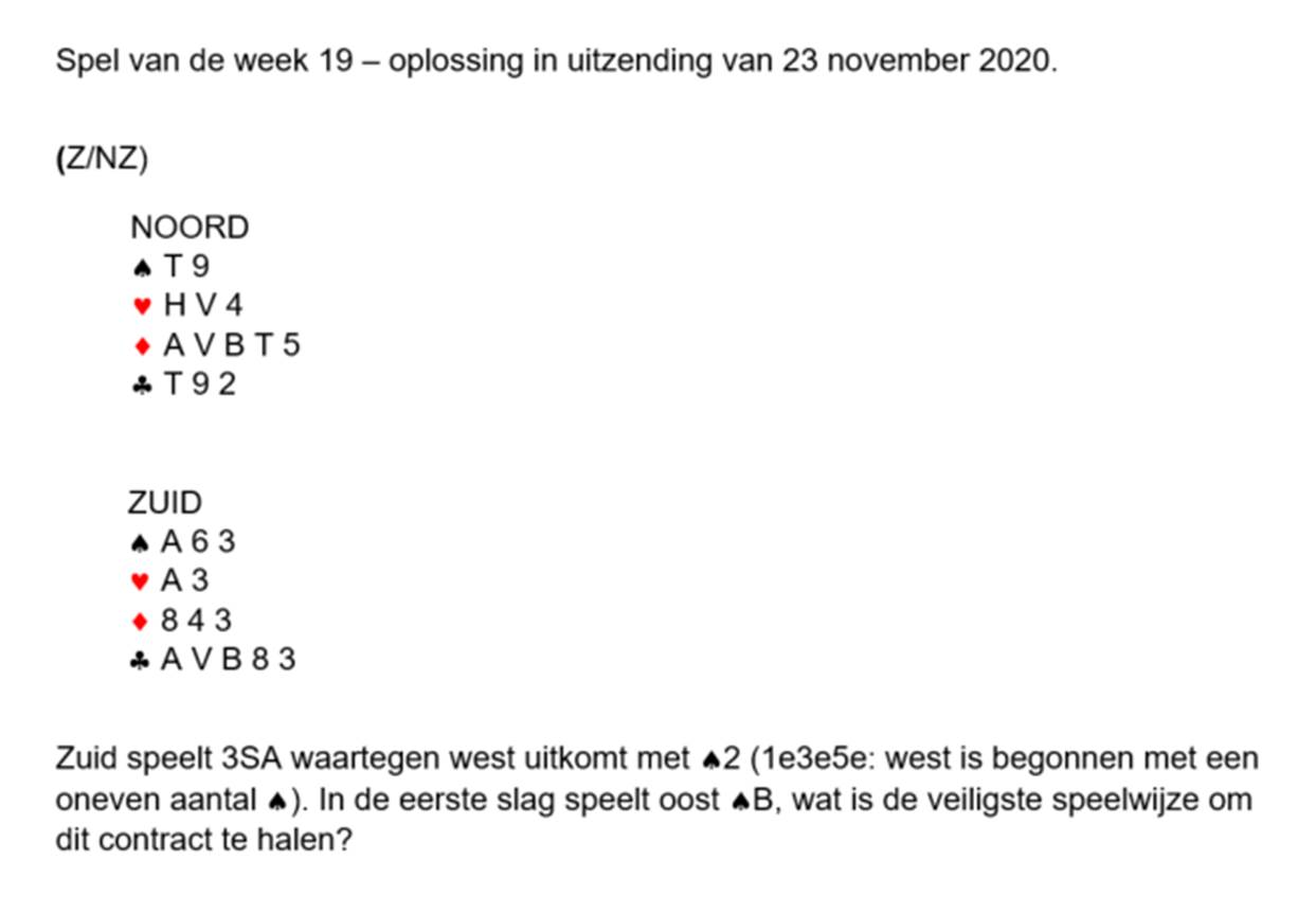 Stuur je oplossing van het (lopende) spel van de week naar ondersteuning@bridge.nl en maak kans op de prijs die is aangeboden door de Bridge- en Boekenshop!