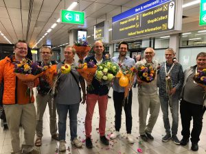 Ons ‘zilveren’ TeamNL Bridge Open is met alle egards ontvangen op Schiphol. Familie, fans en bondsbestuur haalden het team in dat bridgend Nederland afgelopen weken op het puntje van de stoel heeft gehouden. We kunnen het niet vaak genoeg zeggen: dank jullie wel voor een geweldig toernooi!