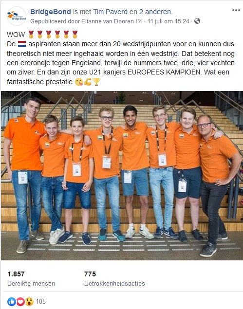 Like de Facebookpagina van de BridgeBond en het nieuws blijft je bereiken.