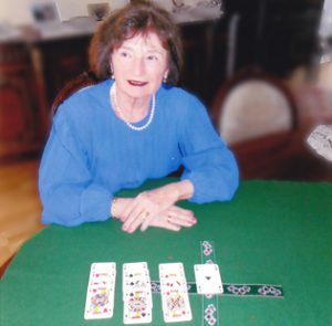 Al snel viel Ilona voor al het mooie dat bridge te bieden heeft. Zelf vond zij haar start met bridgen op haar 73ste een beetje aan de late kant. Maar goed, ze volgde een cursus en begon daarna sporadisch te spelen. Ze merkte dat het niet voldoende was een cursus te volgen en uit de boeken te leren. ‘Ik heb alle boeken van Berry Westra van binnen en van buiten geleerd , maar aan tafel zitten en werkelijk bridgen, dat is een heel ander verhaal. Het is wel mijn conclusie dat je heel veel moet spelen. De regels kennen is niet voldoende. Dat geeft geen zekerheid dat je ook kunt winnen. Elk spel is anders. De ene week gaat het heel goed en de andere week gaat het helemaal niet.’