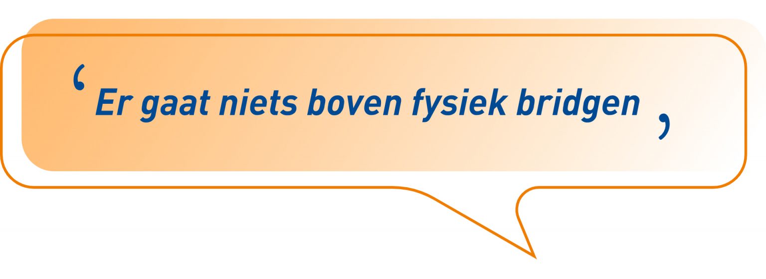 ‘Bridgen op donderdag is echt belangrijk. Het is familie. Het verenigingsleven blijft mooi. Ik ben heel bewust lid gebleven, want ik heb al zoveel jaren plezier gekregen van mijn club. Ze verdienen het en ze hebben het moeilijk. Het is belangrijk dat we de club steunen zodat we straks weer met elkaar op de donderdagavond op de club spelen.’